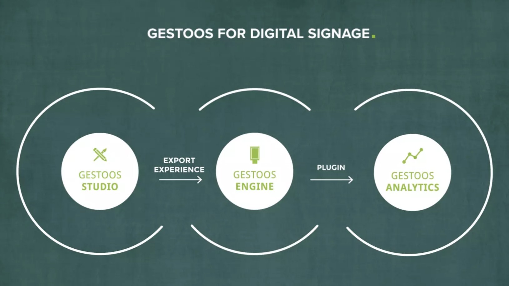 Understand the Gestoos Digital Signage ecosystem of Gestoos Studio authoring, Gestoos Engine runtime, and Gestoos Analytics interaction.